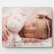 Modern baby photo birth plaque for girl or boy. Simply use this template to add your own custom photo of your own sweet baby, and personalise with baby's name in the elegant trendy script typography.