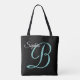 Personalise Monogram and Name on a stylish design with white and light teal script lettering on black background.