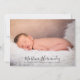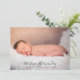 Modern baby photo birth announcement for girl or boy. Simply use this template to add your own custom photo on the front and back of the card; of your own sweet baby and personalise with baby's name in the elegant trendy script typography.