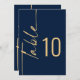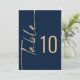 Calligraphy Script navy and Gold Wedding Printable Table Number. Available digitally and printed. Table is set in a styiish rotated script to the left and your table number to the right. Easily personalise the number and add each number to your cart separately as you change it. The same design is on the other side and will update simultaneously as you make your change to the number.