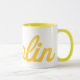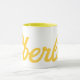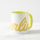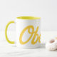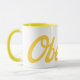 Enjoy your coffee with flair in this two-tone yellow mug with script yellow Oberlin text.