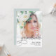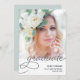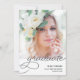Simple and chic photo graduation party invitation features your favourite senior portrait or graduation photo bordered by a thick white band along the bottom, with "graduate" overlaid in elegant calligraphy script. Personalise with your name, class year and school beneath, and add your graduation party invitation details to the reverse side on an icy pastel green-grey background.