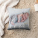 Modern elegant gold photo baby birth announcement pillow to introduce your beautiful newborn baby. The front features a photo of your baby along with chic gold and black text for your baby's name and birth stats with a second photo on the reverse. A lovely keepsake to celebrate your new arrival! Designed by Thisisnotme©