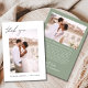 Send a warm and elegant message of thanks with this Sage Green Script Photo Wedding Thank You Card. Featuring a soft sage green background, graceful script typography, and a space for your favourite wedding photo, this design is perfect for nature-inspired, rustic, or minimalist wedding themes. Personalise it with your names and a heartfelt note to create a meaningful keepsake that reflects the beauty and gratitude of your special day.