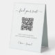 Modern and elegant design printed Calligraphy Script Horizontal Wedding Please Find Your Seating Chart QR Code Sign that can be customised with your text. Check out the Graphic Art Design store for other products that match this design! If you need help or matching items, please contact me. zazzle.com/store/graphicartdesign