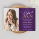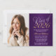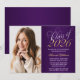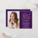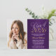 An elegant script font class of 2025 graduation party announcements. Shown in gold, white and purple. Perfect for a high school senior graduation, college graduation or graduation party. Designs are flat printed illustrations/graphics - NOT ACTUAL GOLD FOIL. THE SAMPLE PHOTO IS NOT INCLUDED. REPLACE WITH YOUR OWN PHOTO BEFORE ORDERING.