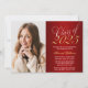 An elegant script font class of 2025 graduation party announcement. Shown in gold, white and red. Perfect for a high school senior graduation, college graduation or graduation party! Designs are flat printed illustrations/graphics - not actual gold foil. THE SAMPLE PHOTO IS NOT INCLUDED. REPLACE WITH YOUR OWN PHOTO BEFORE ORDERING.