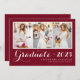 Script Red Three Photo Collage Graduation Invitation | Anivite family and friends to your graduation with this customizable invitation. It features black modern calligraphy and simple typography and red background color. Feature your favorite photos with this three photo collage invitation. Turn this invitation into an announcement by deleting the back details.