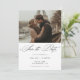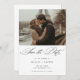 This chic romantic wedding Save the Date transforms your favourite romantic couple portrait into a timeless keepsake. Featuring a handwritten, whimsical script, modern, elegant typography, and a soft, minimalist layout, it blends Parisian romance with boho charm. Whether it’s a dreamy Paris shoot or a golden hour countryside moment, it’s perfect for your rustic engagement photo announcement or trendy wedding photo reveal.