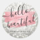 Script Rose Gold Silver Lights "Hello Beautiful" Classic Round Sticker