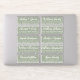 Easy to personalise, names and addresses / individual wedding address label stickers for guest invitations. These chic, modern and stylish wedding address labels feature your wedding guest names in white elegant handwritten script calligraphy on a sage green background. Simply add your individual wedding guest names and address. Exclusively designed for you by Happy Dolphin Studio.