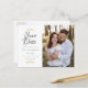 This elegant save the date card features your photo and beautiful gold doves and hearts above a script save the date and your names, date and venue. The reverse has additional save the date details, including your wedding website, with your return address and space for your recipient's address. Designed by Thisisnotme©