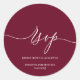 Script Signature Elegant Wedding RSVP burgundy Classic Round Sticker