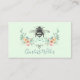 Elegant earthy whimsical script signature personalised bumble bee floral calling card for new friends and networking. Delicate organic earthy style illustration. Green background.