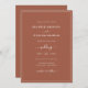 Script Terracotta Wedding Invitation. Make your wedding invitation as memorable as your special day with this chic and stylish design. Featuring a simple minimalist look with a classy traditional touch, this modern text-only invitation features a hand-lettered calligraphy script with a classic terracotta / burnt orange border frame. Find coordinating products in the Simple Elegant Terracotta Border Wedding Suite.