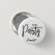 Cute modern script Bachelorette Button for the Bride's friends to wear during her bachelorette party . Simple handwritten text that says the Party. The perfect personalised gift button for the bridesmaid and other friends. See matching collection.