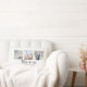 Pillow featuring the words "this is us" in a stylish script with 3 square photos arranged side by side on the front and back side making it 6 photos in total that you can replace with you own photos against a white background. You can also add your family name and the year established. Perfect for home decor, newlyweds, family keepsakes, etc.
