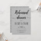 Cursive script typography grey kraft paper rustic wedding rehearsal dinner invitation. The back includes a black and white geometric pattern on grey kraft style paper.