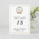 "Script Typography Monogram Gold Table Numbers Wedding Reception Table Number Cards." Vintage gold Laurel leaf wreath with typography text layout in gold glitter look with a white background. Art by internationally licensed artist and designer, Audrey Jeanne Roberts, copyright.