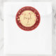 Red maple leaf for maple syrup with script typography round label with farm name, net weight, and address. You can edit the details according to your needs.