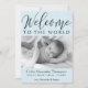 Script Welcome to the World blue polka dot photo Announcement