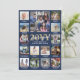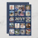 What a year to remember! Send stylish joyful greetings and share 15 of your favourite pictures with a custom 5x7 photo collage holiday card. (IMAGE PLACEMENT TIP: An easy way to centre a photo exactly how you want is to crop it before uploading to the Zazzle website.) Text on this template is simple to customise to include any wording such as Merry Christmas, Happy Holidays, Seasons Greetings, New Years Cheers, etc. Navy blue, white and gold design features faux gold foil, trendy handwritten style script calligraphy, modern typography family name and year, and a unique photo grid of 15 square pictures with typewriter font captions. On the back is space to write a personalised message or the year in review. Family and friends will love displaying this elegant customised card. Please note that gold is printed colour, not metallic foil.