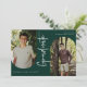 Modern scripted "graduate", arch frame 4 photo graduation announcement/invitation in forest green.