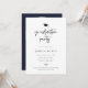 Modern edgy script, graduation party invitation. Features, graduation cap accent and arch frame photo backing.