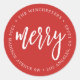 This holiday return address label features the word "merry" in a white modern script in the centre of the label with your name and address around it.