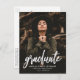 Invite guests to celebrate the grad with trendy photo graduation party invitation postcards. The graduation party invites display the graduate's vertical photo with "graduate" in white script lettering. Personalise the front of the invite by adding the graduate's name, school name, and graduation year. The postcard reverses to display your return address and graduation party details.