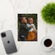 Scripted Photo Happy Thanksgiving Foil Holiday Card with brushed calligraphy script type lettering. Blank inside for your handwritten message.