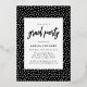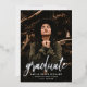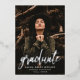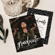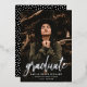 Simple graduation party invitation featuring the graduate's photo with "graduate" in real rose gold foil script. Personalise the front of the photo graduation party invite by adding the graduate's name, school name, and graduation year. The invite reverses to display your party details with a pattern of white sprinkles with a black background or colour of your choice.