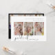Signature script, 4 photo snapshot, graduation announcement. Features, 3 vertical portrait photos on front, single vertical photo on back, celebration party invitation and solid black colour backing.
