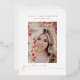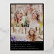 Graduate script, in foil. Graduation 4 photo announcement/invitation. Single photo on front, 3 photos on back with black background colour and celebration invitation details.