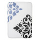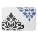 Scroll Damask Art I Black & Blue on White Bath Mat