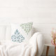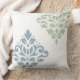 Scroll and leaf damask in powder blue and green detail on a white background.