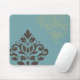 Scroll Damask Art I Brown Gold (line) Teal Mouse Pad