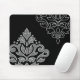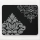 Scroll Damask Art I White Line Grey Black Mouse Pad