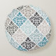 Scroll Damask Big Pattern Teals Browns White Round Cushion