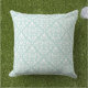 Scroll Damask Big Ptn White on Lt Teal Cushion