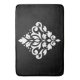 Scroll and leaf damask in a vintage style design, with white detail on a black background.