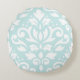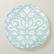 Scroll Damask Design White on Duck Egg Blue Round Cushion