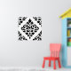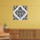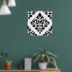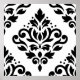 Scroll and leaf damask in a vintage style large patterned design, with black detail on a white background.