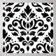 Scroll and leaf damask in a vintage style large patterned design, with black detail on a white background.