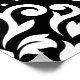 Scroll and leaf damask in a vintage style large pattern, with white detail on a black background.