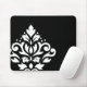Scroll Damask Off-set I White on Black Mouse Pad