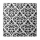 Scroll and leaf damask in a vintage style pattern, with black detail on a white background.