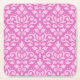 Scroll Damask Pattern Light on Dark Pink Square Paper Coaster