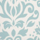Scroll and leaf decorative damask surface pattern design in light teal colour detail on a cream colour background.