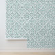Scroll Damask Pattern Light Teal on White Wallpaper